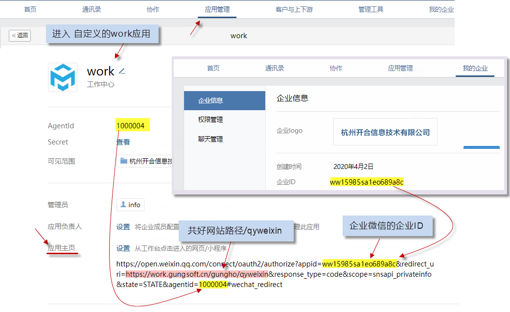 進入管理后臺-> 我的企業 最下方 紅圈所示。 這里是準備材料說的 企業id