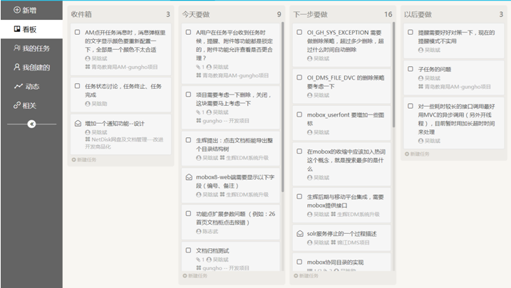 任務管理是企業(yè)協(xié)同的重要組成部分。 任務管理是企業(yè)內部事務協(xié)同的重要工具,與傳統(tǒng)的OA有類似之處,都是推動企業(yè)內部事務有效快速的推進,但之前存在不同之處,OA是屬于剛性流程化的管理,側重于流程與規(guī)范,任務管理側重于人員、事務之間的協(xié)同,側重于靈活度與協(xié)同性上 從靈活度上看,可以用于企業(yè)各種事務的管理與處理,比如客戶進展管理、開發(fā)進度、產(chǎn)品設計等