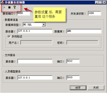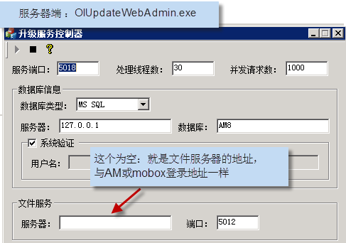 注解: 文件服務的服務器地址 (要求在局域網(wǎng)及外網(wǎng)都能訪問的IP地址)若有些用戶沒有外網(wǎng),則就是內(nèi)網(wǎng)能訪問的地址。 (一般我們的升級服務與AM8/Mobox的主服務都是在一臺機器上)參數(shù)更新后,需要重啟這個服務