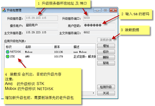 AM及Mobox客戶端可以實現(xiàn)在線自動升級。過程是,現(xiàn)在服務器端部署最新的升級包,AM或Mobox客戶端登錄的時候,能識別服務端已經(jīng)有新的版本,進而提醒客戶端進行升級。以下是服務端配置最新升級包的方法