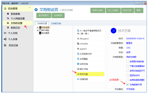 文檔柜創建后,【文檔能被引用】選項必須打勾