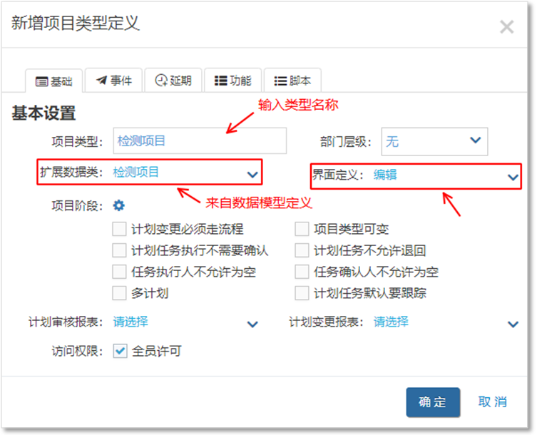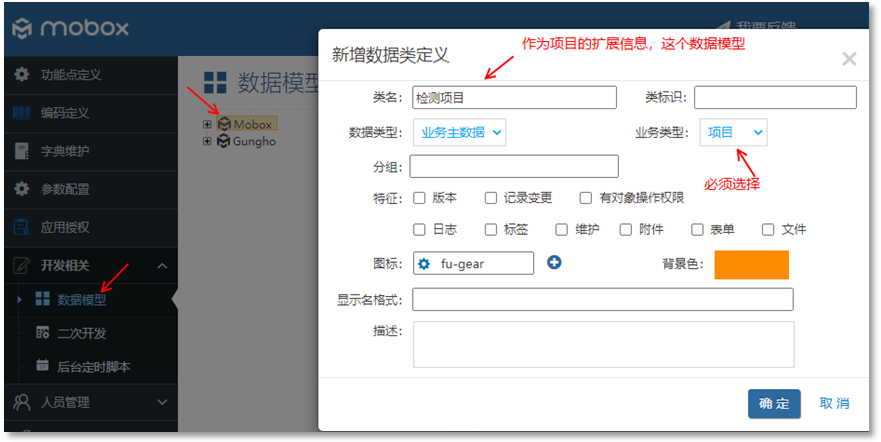 企業(yè)在實施項目管理系統(tǒng)的時候,不通類型的項目其屬性可能是不一樣的。而Gungho標準系統(tǒng)內(nèi)對項目的屬性,主要包括(項目名稱、編號、開始結(jié)束日期等)。為了適應企業(yè)個性項目信息的輸入,我們需要通過Mobox平臺定義項目類型去適應這個需求