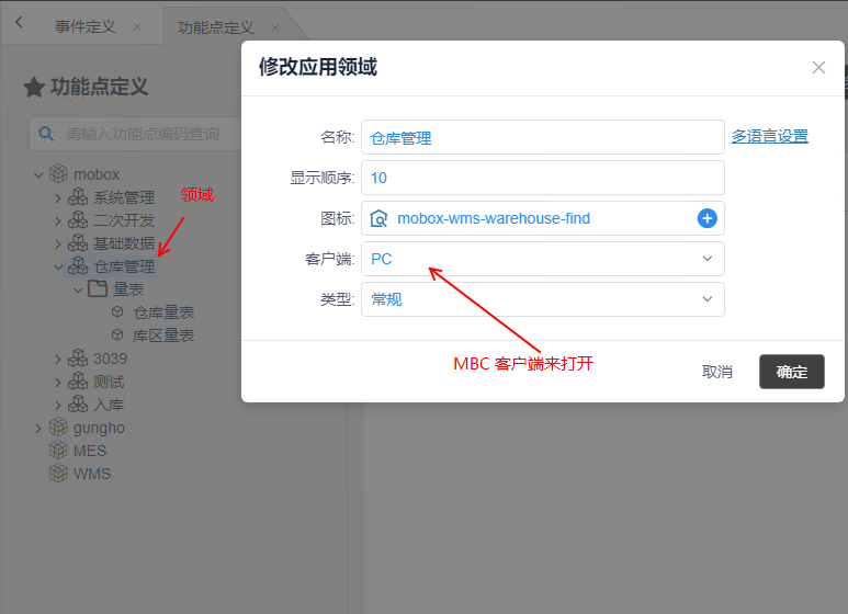 2、mobox3定義的功能領域可以發布到 MBC客戶端