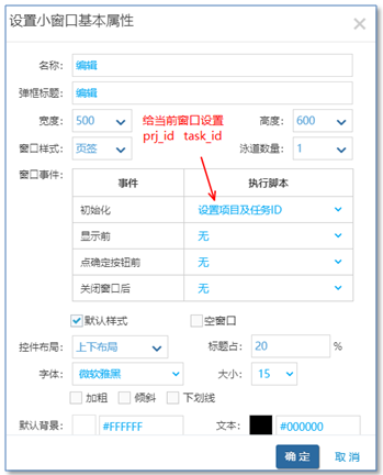 定義小窗口的時候需要注意,有一個窗口初始化腳本要執(zhí)行(目的是個小窗口內(nèi)設(shè)置prj_id, task_id)